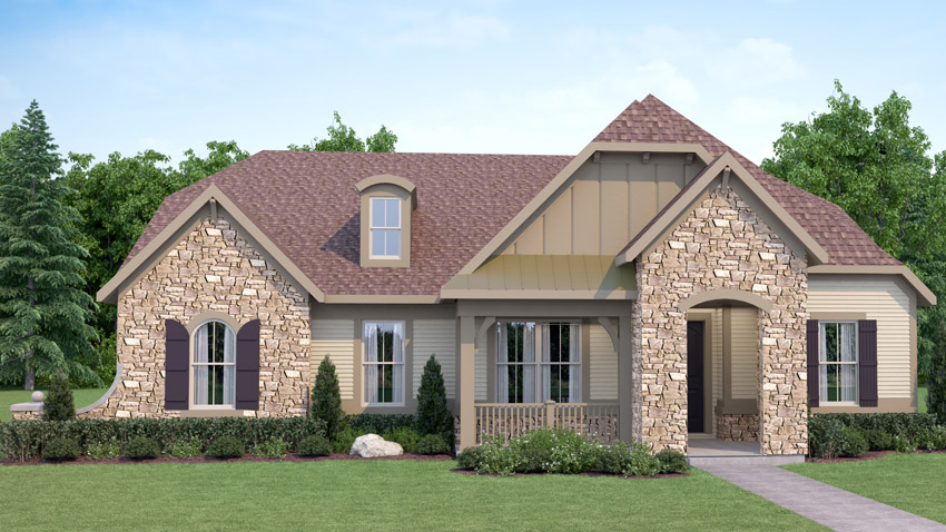 Exterior rendering of 1 story home floor plan, Bushwood, Craftsman style Craftsman